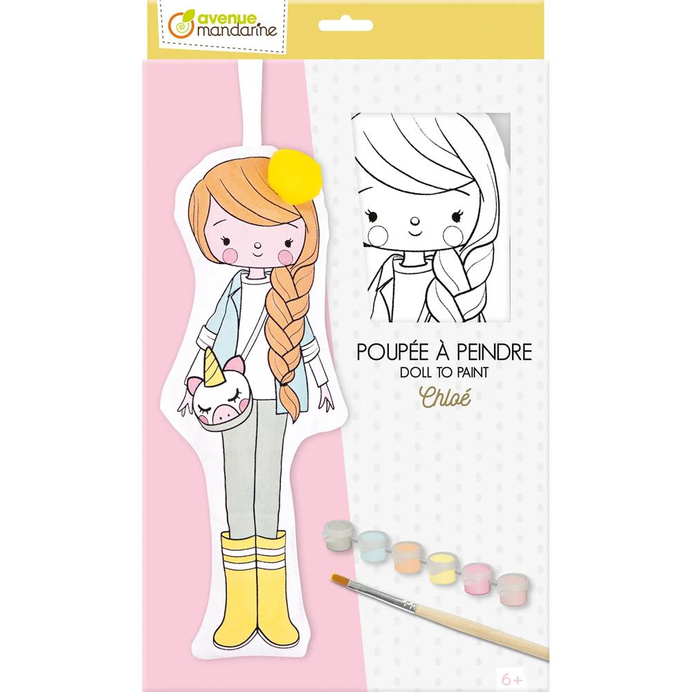 Une jolie poupée en coton imprimé (H. 28 cm) à peindre et customiser avec le kit de 6 flacons de peinture acrylique et les accessoires (ruban, pinceau..) inclus dans le coffret. Une activité originale et créative en exclusivité chez Avenue Mandarine ! A partir de 6 ans. Contient: 1 poupée à peindre en tissu (motif imprimé au dos de la poupée), 1 planche adhésive en tissu à peindre, 6 flacons de peinture acrylique, 1 pinceau et 50 cm de ruban. Conforme aux normes CE.