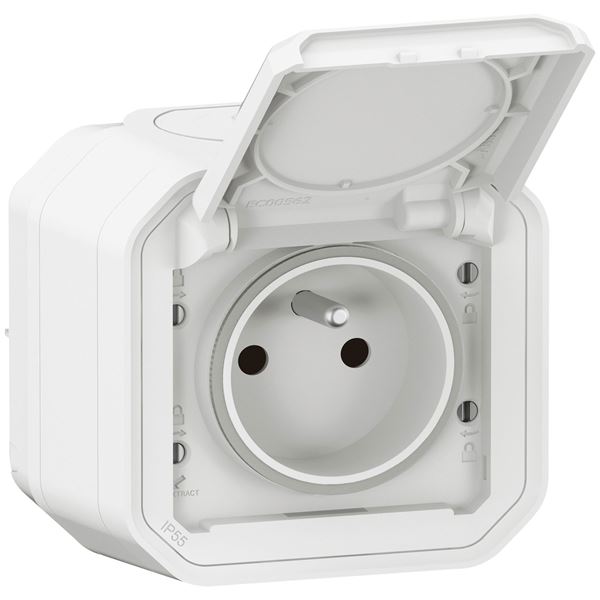 La prise de courant 2P+T Plexo complet saillie blanc de chez Legrand a un mécanisme équipé de bornes automatiques. IP 55 (indice de protection renforcée). Livrés complets avec boîtier saillie. Plexo, prise de courant étanche complète, prête à installer en apparent au mur, livrée avec boitier saillie. Prise de courant 2P+T à volet 16A 250V avec connexion rapide sans outil et repérage couleur. IP55 : protégé contre les poussières et les projections d'eau à la lance de toutes directions - IK08 : résistance à un choc de 5 joules. 2 modes de câblage possibles : câblage hors platine et pose du mécanisme par simple clip, câblage possible avec la mécanisme déjà clipsé sur la platine. Finition Blanc, adapté aux milieux où l'hygiène est importante (une salissure porteuse de germes se voit immédiatement).
