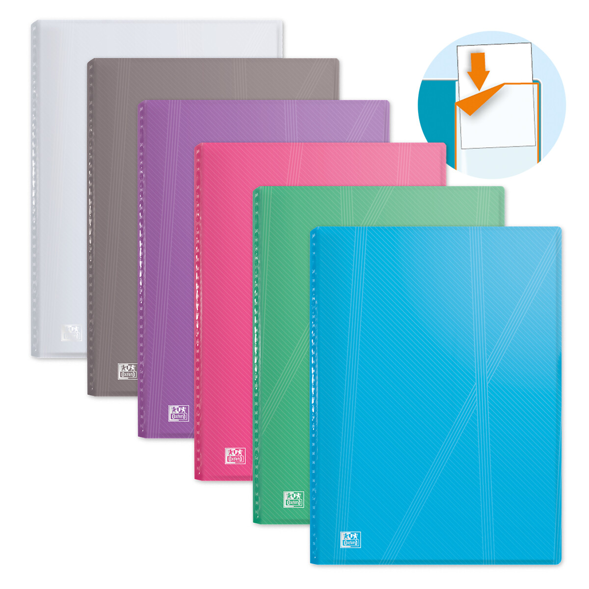 INSERTION FACILE : Chaque pochette du porte-vues s'ouvre partiellement en angle. Cela permet une insertion facilitée des documents dans la pochette. DOS : Le dos du porte-vues est extensible. Il permet de s'adapter facilement au contenu et il garantit un stockage d'un grand nombre de documents. LISIBILITE : Les pochettes de ce protège-documents sont transparentes et parfaitement lisses. Elles permettent une meilleure lisibilité des documents. Ce produit est disponible sous les versions de couleurs suivantes : Assorti : Bleu, Gris, Incolore, Rose, Violet, Vert