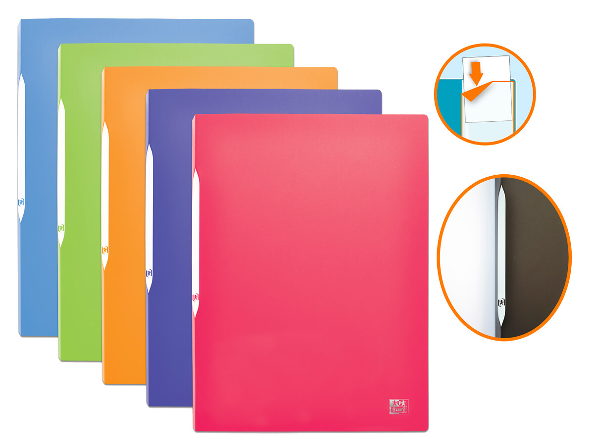 RIGIDITE : La couverture du porte-vues Stand'Up est ultra-rigide. Cela permet une meilleure tenue à la verticale pour un rangement en étagère facilité. INSERTION FACILE : Chaque pochette du porte-vues s'ouvre partiellement en angle. Cela permet une insertion facilitée des documents dans la pochette. IDENTIFICATION : Le porte-vues offre une zone blanche, imprimée sur le dos, afin d'identifier facilement le porte-vues lorsque celui-ci est rangé à la verticale. Ce produit est disponible sous les versions de couleurs suivantes : Assorti : Rose ; Violet ; Vert ; Orange ; Bleu