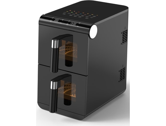 Avec la friteuse à air chaud AF169 de Purelec, cuisinez de façon plus saine et pratique grâce à sa double capacité totale de 11 L répartie en 2 paniers indépendants de 5,5 L chacun. Vous pouvez ainsi préparer simultanément deux aliments différents, avec chacun son ventilateur cyclonique et son système de chauffe rapide, pour un résultat homogène et gourmand. Polyvalente, cette friteuse propose 13 programmes automatiques et 4 modes en 1 : Air Fryer, rôtisserie, réchauffage et déshydratateur. La température réglable de 50 à 200°C et le minuteur de 60 minutes vous permettent d’adapter parfaitement la cuisson à vos recettes. Simple d’utilisation, elle est équipée d’un panneau de contrôle tactile avec afficheur réglable, offrant un accès intuitif à toutes ses fonctions. Côté entretien, les paniers à revêtement antiadhésif passent au lave-vaisselle pour un nettoyage rapide et sans effort. Avec ses dimensions de 46,6 x 25 x 41,1 cm, elle reste compacte tout en offrant une grande capacité, parfaite pour les familles ou les repas conviviaux.