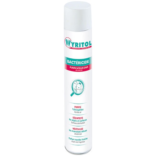 Le purificateur d'air désinfectant de 500 mL de la marque WYRITOL est spécialement conçu pour améliorer et rendre plus sain l'air ambiant. A usage préventif, il est particulièrement recommandé lors des périodes de pandémies ou lorsqu'un membre du foyer est malade. 3 en 1, il assainit l'air, désinfecte et désodorise les lieux. Bactéricide EN1276 . Avant toute utilisation, lisez létiquette et les informations concernant le produit.