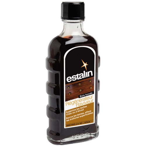 Le régénérateur de la marque ESTALIN de 250 mL est un régénérateur raviveur pour bois foncés. Il supprime les taches d'eau ou d'alcool. Ravive les teintes et efface les éraflures superficielles.