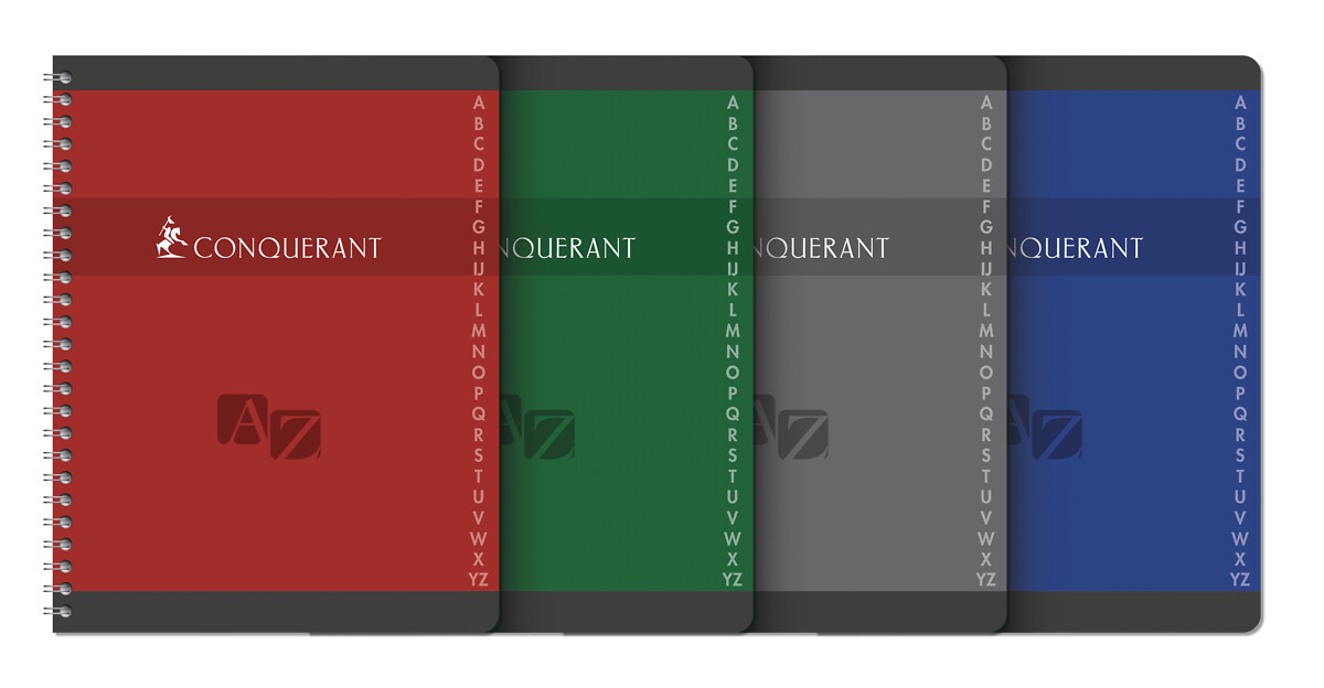 COUVERTURE : Pour un respect de l'environnement, Conquérant a créé un répertoire alphabétique à couverture partiellement recyclée et suffisamment épaisse pour résister toute l'année. ONGLETS : Les onglets du répertoire Conquérant sont alphabétiques. Ils vous permettent de retrouver vos contacts plus facilement et de les classer par ordre alphabétique. REGLURE : La réglure à petits carreaux 5mm, aussi appelée réglure quadrillée assure une prise de notes structurée. Ce produit est disponible sous les versions de couleurs suivantes : Assorti : Rouge/Orange ; Gris/Noir ; Bleu/Vert ; Rouge/Vert