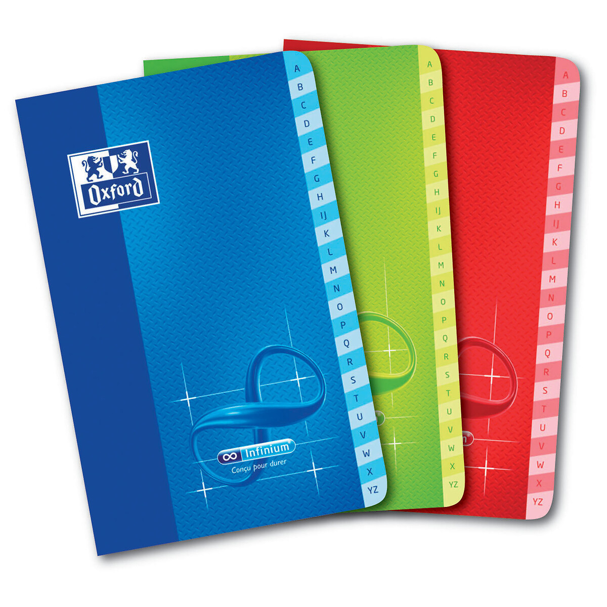 FLEXIBILITE : Le répertoire Infinium offre couverture en papier synthétique pour un répertoire ultra souple et léger. Cette couverture unique est facile à manipuler et à maintenir ouverture ou fermée, ce qui procure un confort d'écriture optimal. RESISTANCE : En plus d'être flexible et ultra souple, la couverture en papier synthétique est totalement indéchirable et imperméable pour un répertoire qui résiste à une année scolaire complète. ONGLETS : Les onglets alphabétiques sont plastifiés pour une meilleure résistance dans le temps. Ils permettent de retrouver facilement ses notes et d'organiser par ordre alphabétique ses écrits. Ce produit est disponible sous les versions de couleurs suivantes : Assorti : Bleu ; Rouge ; Vert