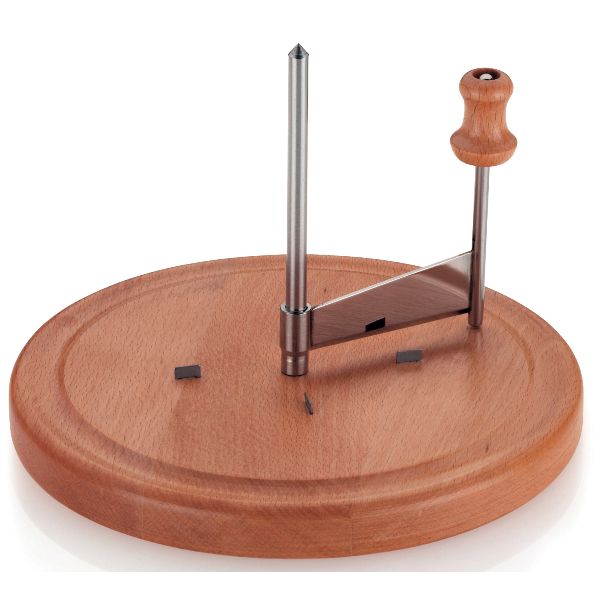Rabot / Girolle à fromage - Luxus - Il vous suffira de tourner la manivelle pour obtenir de très fines tranches ou des copeaux de fromage pour les déguster en apéritif ou décorer une assiette - Elle est parfaite pour trancher la Tête de Moine, un fromage de caractère, qui se déguste en fin copeaux formant des ''fleurs'' de fromage pour révéler encore plus ses saveurs - Au milieux d'une table à la fin d'un repas ou en apéritif, chaque convive peut réaliser ses propres copeaux ou tranches ! - Vous réaliserez facilement des fleurs de fromages en raclant le fromage à l'aide de la manivelle - Le fromage est bien maintenu en place grâce à l'axe central et des 4 picots sur le plateau - Astuce : nous vous conseillons de réaliser les fleurs de fromage dès la sortie de celui-ci du réfrigérateur ! - Plateau en bois de hêtre, couteau et axe central en inox - Diamètre 21.5 cm - Hauteur 16.5 cm.