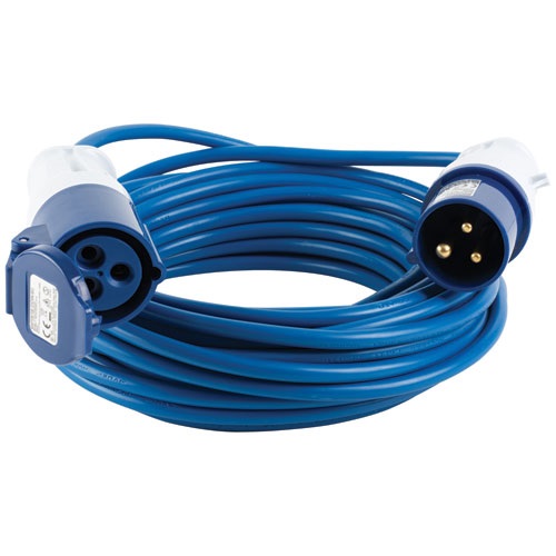 La rallonge électrique camping longueur 15 m 3x1.5 mm² prise mâle/femelle bleu de chez CAO sert à raccorder facilement aux bornes de camping. Les prises sont équipées de 2P+T, 16A/200-250V, elles sont aux normes CEE17.
