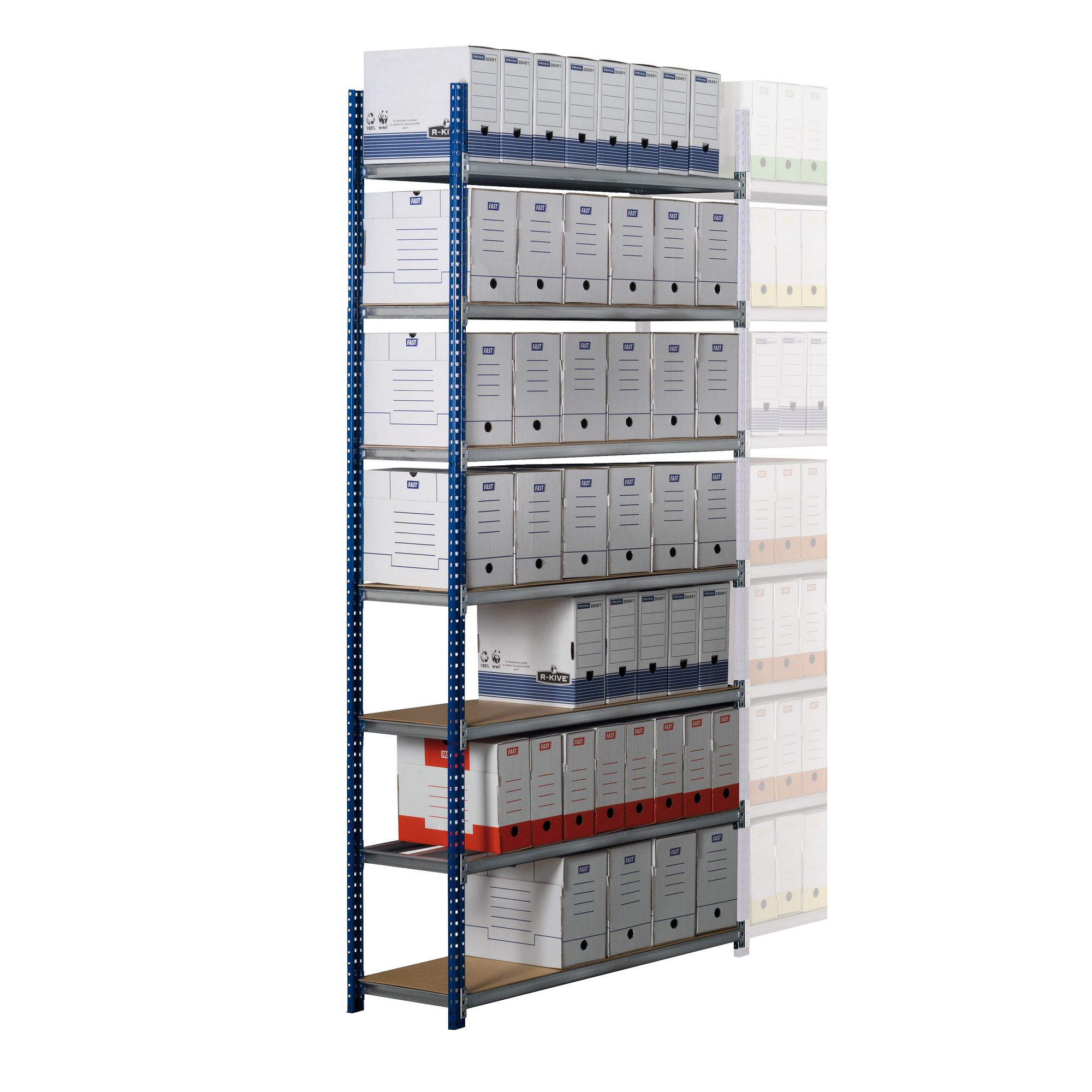 Tablettes équipées pour recevoir des dossiers suspendus sur le modèle simple accès P 35 cm, 1 barreaux intérieur de renfort. Plateaux Isobois en option.