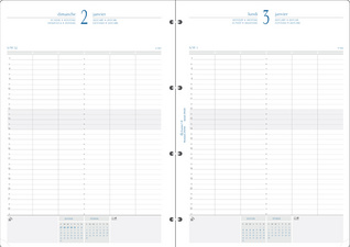 1 jour à la page - Rendez-vous 1/4h par 1/4h de 7h à 23h. Impression en bleu et gris, sur papier blanc Clairefontaine, reconnu pour sa qualité et pour permettre une écriture douce et fluide. Coins perforés détachables pour servir de marque-pages. Certifications : PEFC (fibres de papier issues de forêts gérées durablement) - Imprim'vert (impression respectueuse de l'environnement). Né dans les Vosges, fabriqué en France et pensé pour vous !