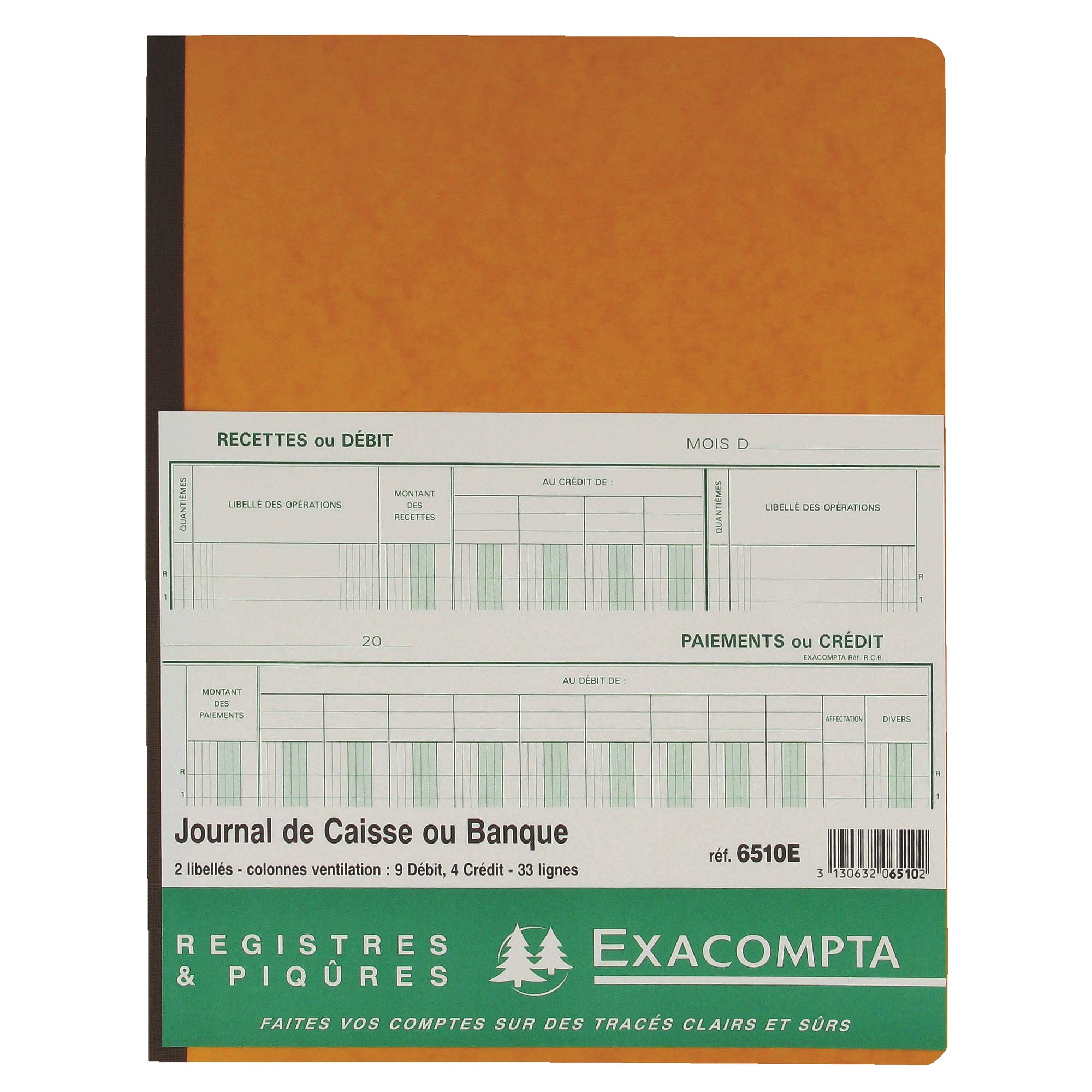 Registre piqûre achats, 2 libellés, 4 crédits, 9 débits.
