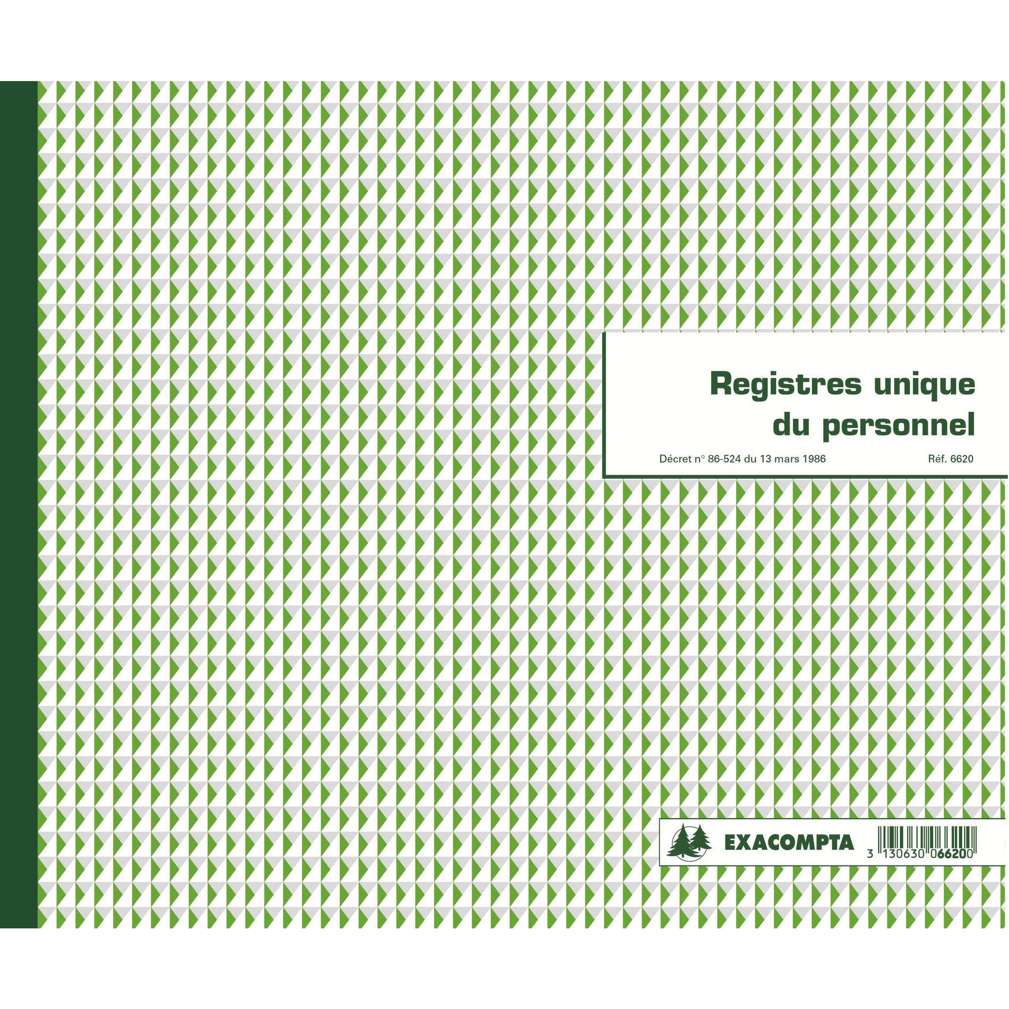 Registre piqûre unique du personnel, référence Exacompta 6620E.