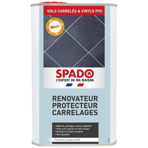 Le rénovateur carrelage sol et plastique Blindor incolore de 1 L de la marque SPADO protège, embellit et entretient les carrelages, terres cuites, sols plastiques, linos, marbres, ardoises, Terrazolith, parquets vitrifiés ou cirés. Ravive la couleur et l'éclat d'origine de votre sol. Assure une haute résistance à l'usure et à l'humidité. Ne rend pas les sols glissants et assure un brillant longue durée.