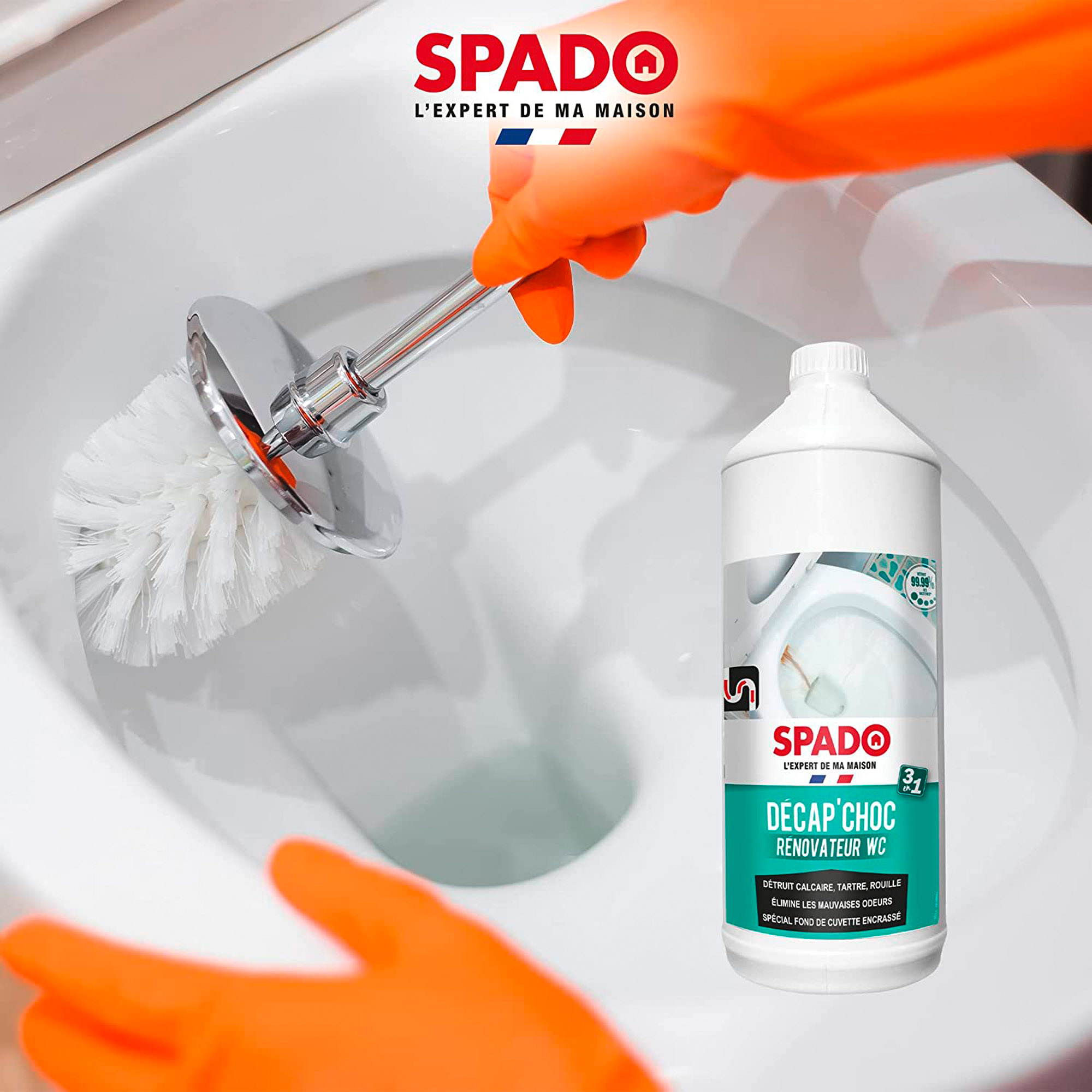 Description détailléeRenovateur WC éliminant traces de rouille, de tartre et de calcaire. Nettoie en profondueur et élimine les mauvaises odeurs. Bidon 1 L.