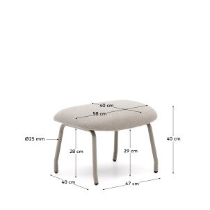 Repose-pied Belina en chenille beige avec repose-pied en acier avec finition blanche