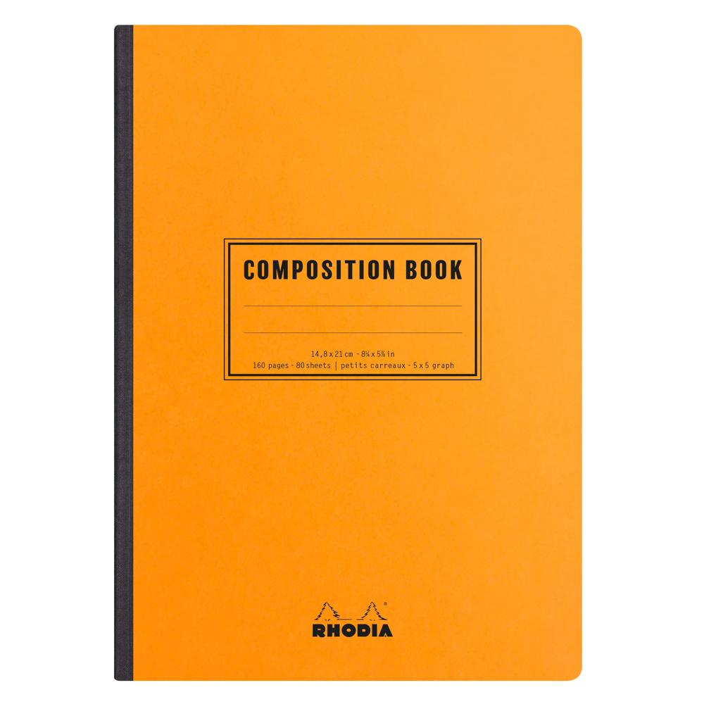 On appelle « Composition book » le cahier de notes relié couramment utilisé par les écrivains et les étudiants aux USA, parce que réputé plus solide et durable. L'original a une couverture marbrée de noir et blanc portant une étiquette générique sur le recto. La réglure est traditionnellement un ligné 7 mm avec une marge gauche à 3 cm. En lui conférant une allure incomparable en Orange & Black, Rhodia réinterprète ce grand classique en deux formats de brochures cousues à dos toilé, dotées d'élégantes réglures grises. Brochure cousue dos carré toilé noir, 160 pages non microperforées, réglure grise Disponible en ligné 7 mm avec marge à 3 cm et en 5/5 Pages de garde orange, parfaite ouverture à plat