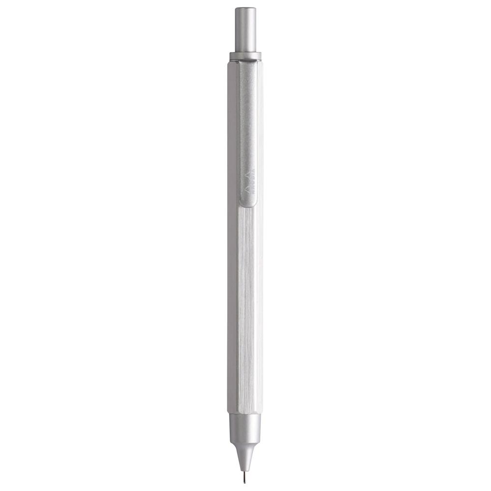 Authentiques et intemporels, les instruments d'écriture Rhodia sont à la fois simples et raffinés. Corps hexagonal en aluminium brossé, pour mines graphite standards 0,5 mm, canon en acier rétractable, gomme sous le poussoir. Vendu en boite cartonnée à fenêtre