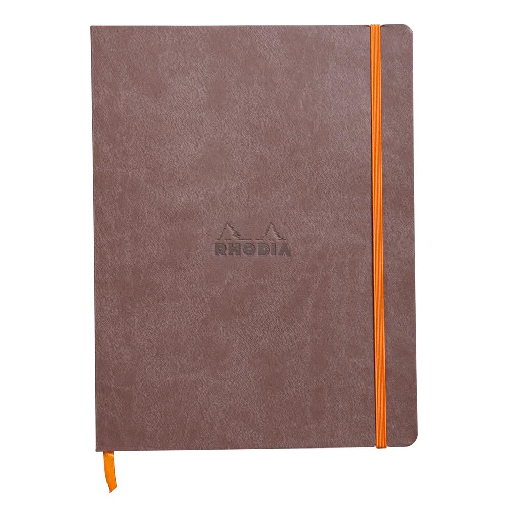 Comment résister au charme de la couverture veloutée et à l'authenticité de la finition cousue main des carnets souples Rhodiarama ? Couverture souple en simili cuir italien, logo Rhodia embossé, fermeture élastique orange. Ruban marque-page orange, pochette à soufflet orange. Papier Clairefontaine vélin velouté 90 g ivoire à la douceur inégalée et à l'opacité et la résistance remarquables. Papier certifié PEFC.