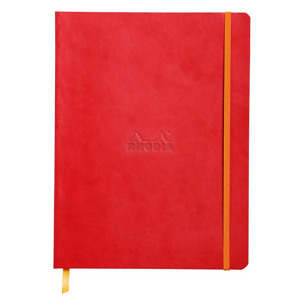 Comment résister au charme de la couverture veloutée et à l'authenticité de la finition cousue main des carnets souples Rhodiarama ? Couverture souple en simili cuir italien, logo Rhodia embossé, fermeture élastique orange. Ruban marque-page orange, pochette à soufflet orange. Papier Clairefontaine vélin velouté 90 g ivoire à la douceur inégalée et à l'opacité et la résistance remarquables. Papier certifié PEFC.