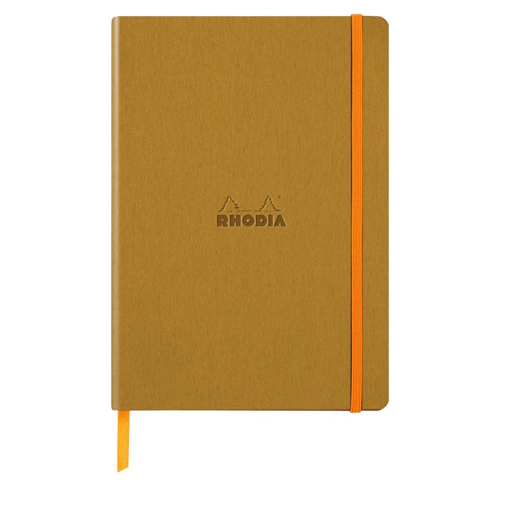 Comment résister au charme de la couverture veloutée et à l'authenticité de la finition cousue main des carnets souples Rhodiarama ? Couverture souple en simili cuir italien, logo Rhodia embossé, fermeture élastique orange. Ruban marque-page orange, pochette à soufflet orange. Papier Clairefontaine vélin velouté 90 g ivoire à la douceur inégalée et à l'opacité et la résistance remarquables.