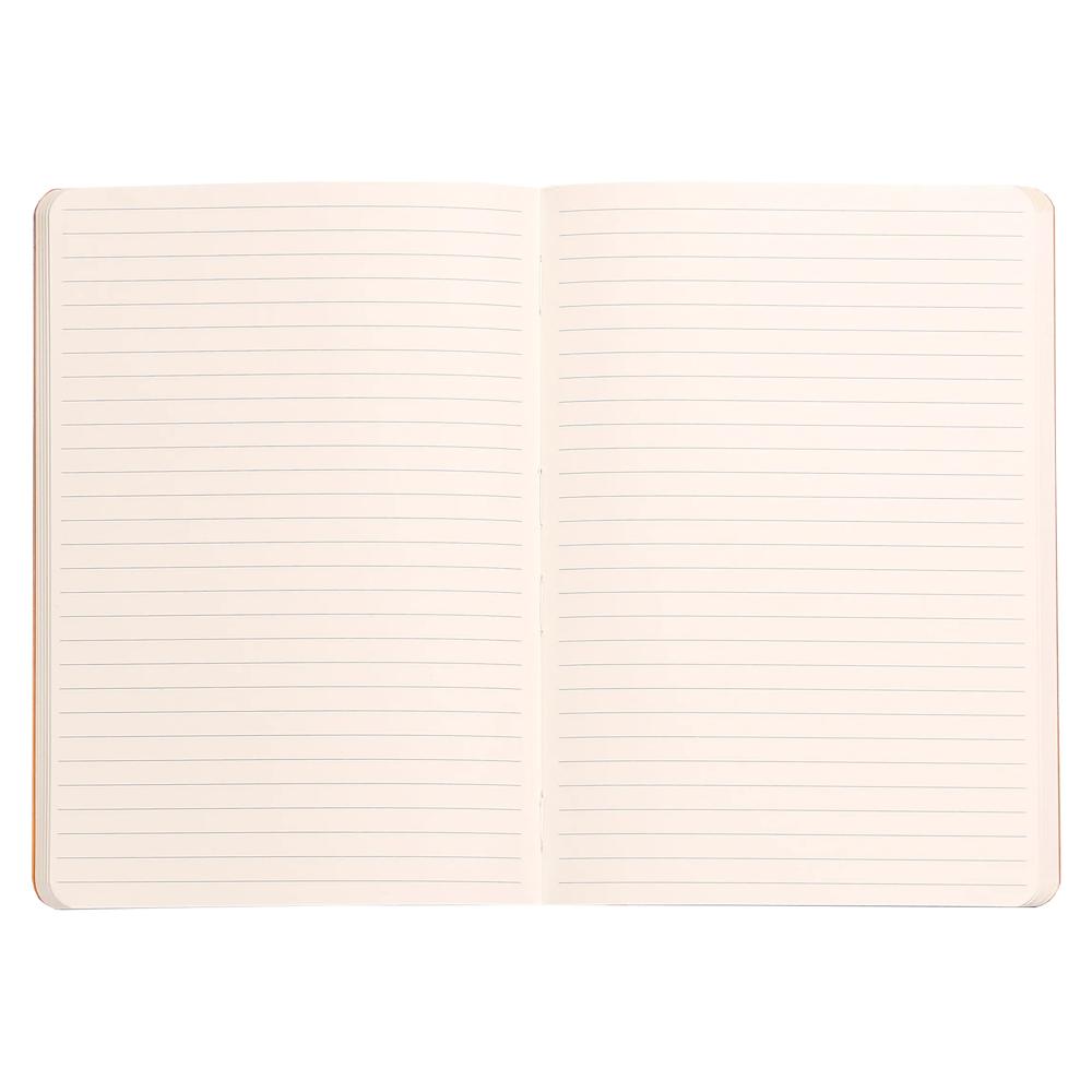 Comment résister au charme de la couverture veloutée et à l'authenticité de la finition cousue main des carnets souples Rhodiarama ? Couverture souple en simili cuir italien, logo Rhodia embossé, fermeture élastique orange. Ruban marque-page orange, pochette à soufflet orange. Papier Clairefontaine vélin velouté 90 g ivoire à la douceur inégalée et à l'opacité et la résistance remarquables. Papier certifié PEFC.