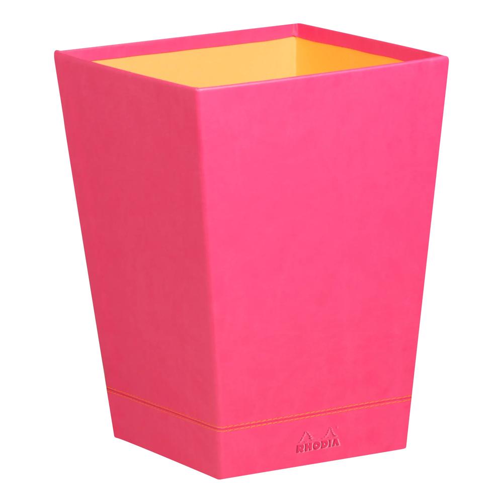Rhodiarama corbeille à papier simili cuir italien 27x27x32 cm - Framboise