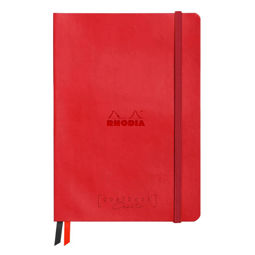 Rhodia Goalbook Creation carnet rembordé rigide A5 160 pages numérotées DOT - papier Maya noir lisse Outil d'organisation personnalisable par excellence, support idéal de ''Bullet Journaling'', le Goalbook offre désormais deux déclinaisons dédiées spécifiquement à la créativité. L'un tout en lumière, doté de papier lavis technique blanc, l'autre tout en intensité, avec ses pages de papier Maya noir, les Goalbook Creation permettent de bujoter de façon ultra-créative grâce aux merveilleux papiers beaux-arts Clairefontaine. Le papier Maya noir 120 g/m2, teinté dans la masse, est parfaitement lisse sur les deux faces. Il se prête quant à lui particulièrement bien au dessin précis au crayon, feutre, graphe liner, plume, de coloris clairs ou métalliques par exemple. Sa surface permet un séchage rapide de l'encre. Très résistant, il supporte les grattages et les gommages répétés, sans pelucher. Brochure cousue rembordée rigide, fermeture élastique assortie, couverture simili cuir italien, logo Rhodia embossé. Deux rubans mar que-pages et pochette à soufflet. Filmé individuellement.