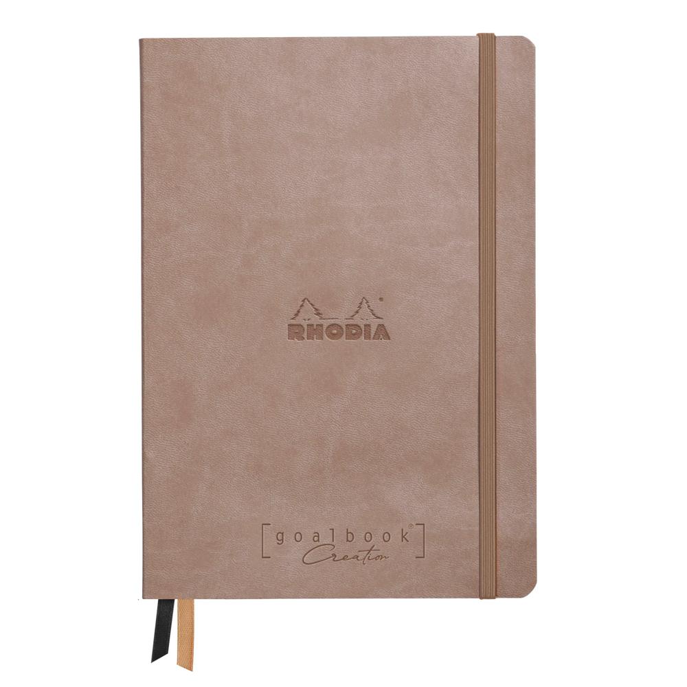 Rhodia Goalbook Creation carnet rembordé rigide A5 160 pages numérotées DOT - papier Maya noir lisse Outil d'organisation personnalisable par excellence, support idéal de ''Bullet Journaling'', le Goalbook offre désormais deux déclinaisons dédiées spécifiquement à la créativité. L'un tout en lumière, doté de papier lavis technique blanc, l'autre tout en intensité, avec ses pages de papier Maya noir, les Goalbook Creation permettent de bujoter de façon ultra-créative grâce aux merveilleux papiers beaux-arts Clairefontaine. Le papier Maya noir 120 g/m2, teinté dans la masse, est parfaitement lisse sur les deux faces. Il se prête quant à lui particulièrement bien au dessin précis au crayon, feutre, graphe liner, plume, de coloris clairs ou métalliques par exemple. Sa surface permet un séchage rapide de l'encre. Très résistant, il supporte les grattages et les gommages répétés, sans pelucher. Brochure cousue rembordée rigide, fermeture élastique assortie, couverture simili cuir italien, logo Rhodia embossé. Deux rubans mar que-pages et pochette à soufflet. Filmé individuellement.