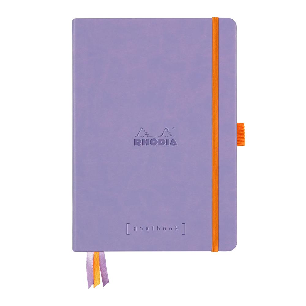 Rhodia Goalbook A5 carnet rembordé rigide 240 pages numérotées DOT papier blanc Le Goalbook est l'outil idéal pour le Bullet Journaling© afin d'organiser son quotidien et ne rien oublier. Ultra-personnalisable grâce à ses 240 pages non perforées dont 224 pages numérotées, 6 pages d'index et 2 calendriers perpétuels. Brochure cousue rembordée rigide, fermeture à élastique, couverture simili cuir italien, logo Rhodia embossé. Trois rubans marque-pages et pochette à soufflet. Filmé individuellement.