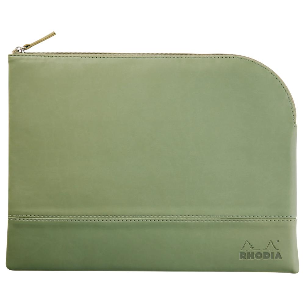 Rhodiarama pochette zippée en simili cuir - taille L (21x28 cm) - Sauge