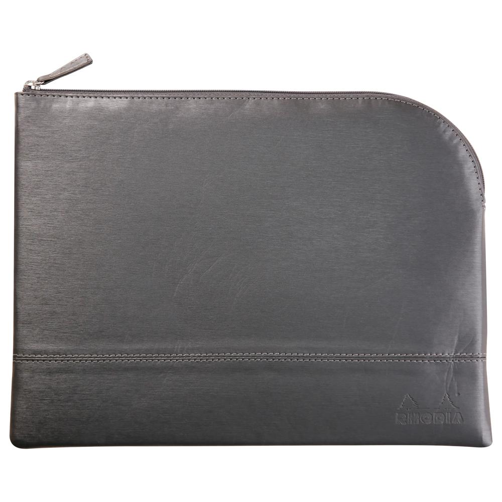Rhodiarama pochette zippée en simili cuir - taille L (21x28 cm) - Titane