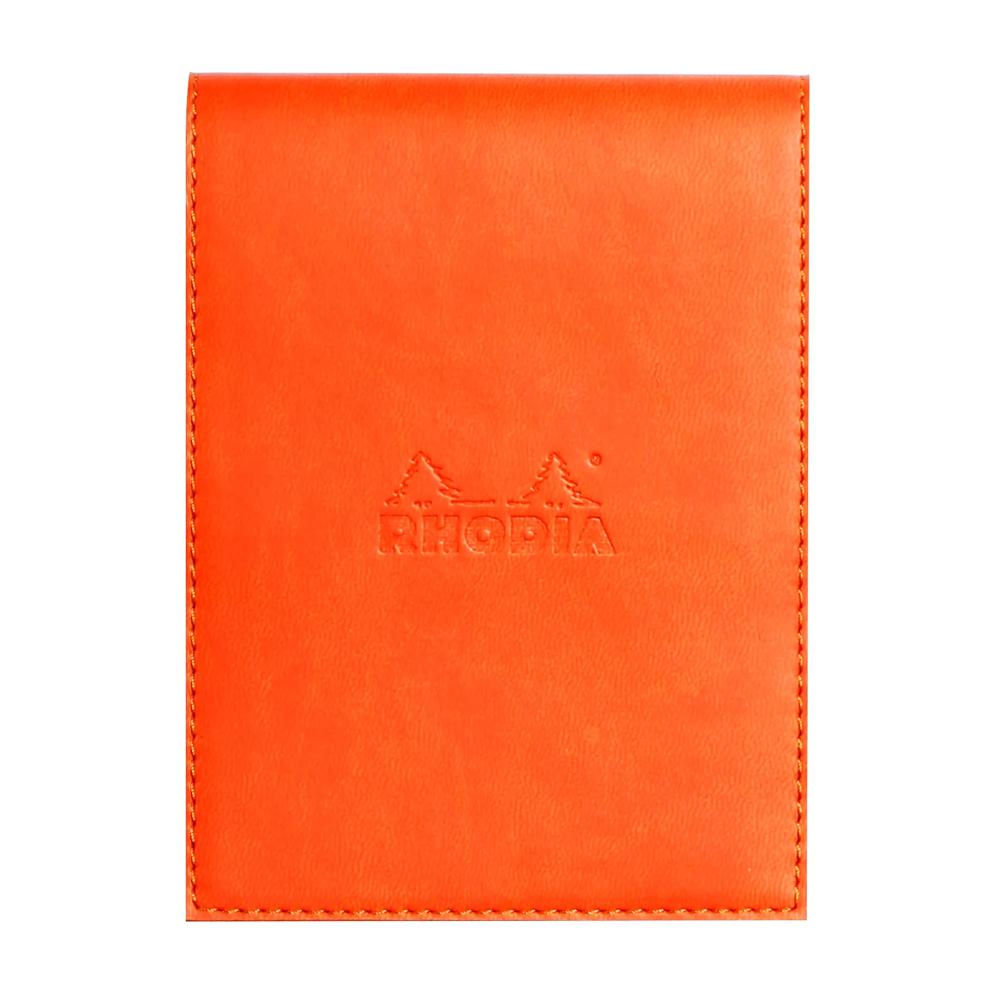 Jamais sans mon porte-bloc ! L'accessoire tendance indispenssable pour habiller votre bloc Rhodia. A adopter d'urgence ! Couverture extérieure en simili cuir italien, intérieur en simili cuir italien Orange. Porte-crayon et porte-carte intégrés. Bloc agrafé Orange N°12 8,5x12 cm ligné inclus. Papier Clairefontaine 80 g certifié PEFC.