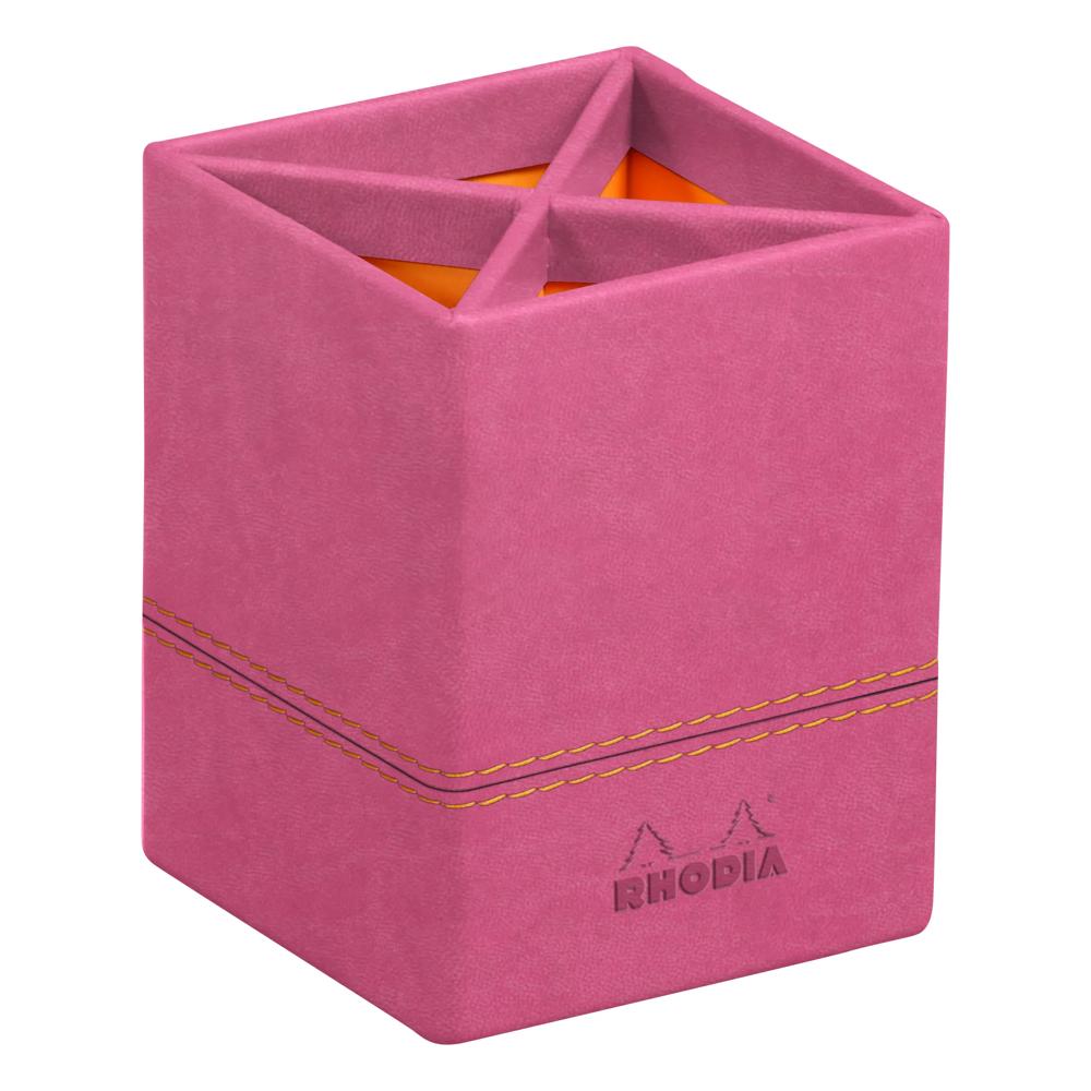 Rhodiarama pot à crayons simili cuir italien 8x8x11 cm - Fuchsia