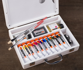 Description détailléeMallette avec tout ce qu'il faut pour peindre à l'huile, contenu: 10 tubes de 40 ml, 1 flacon de médium à peindre, diluant et divers accessoires