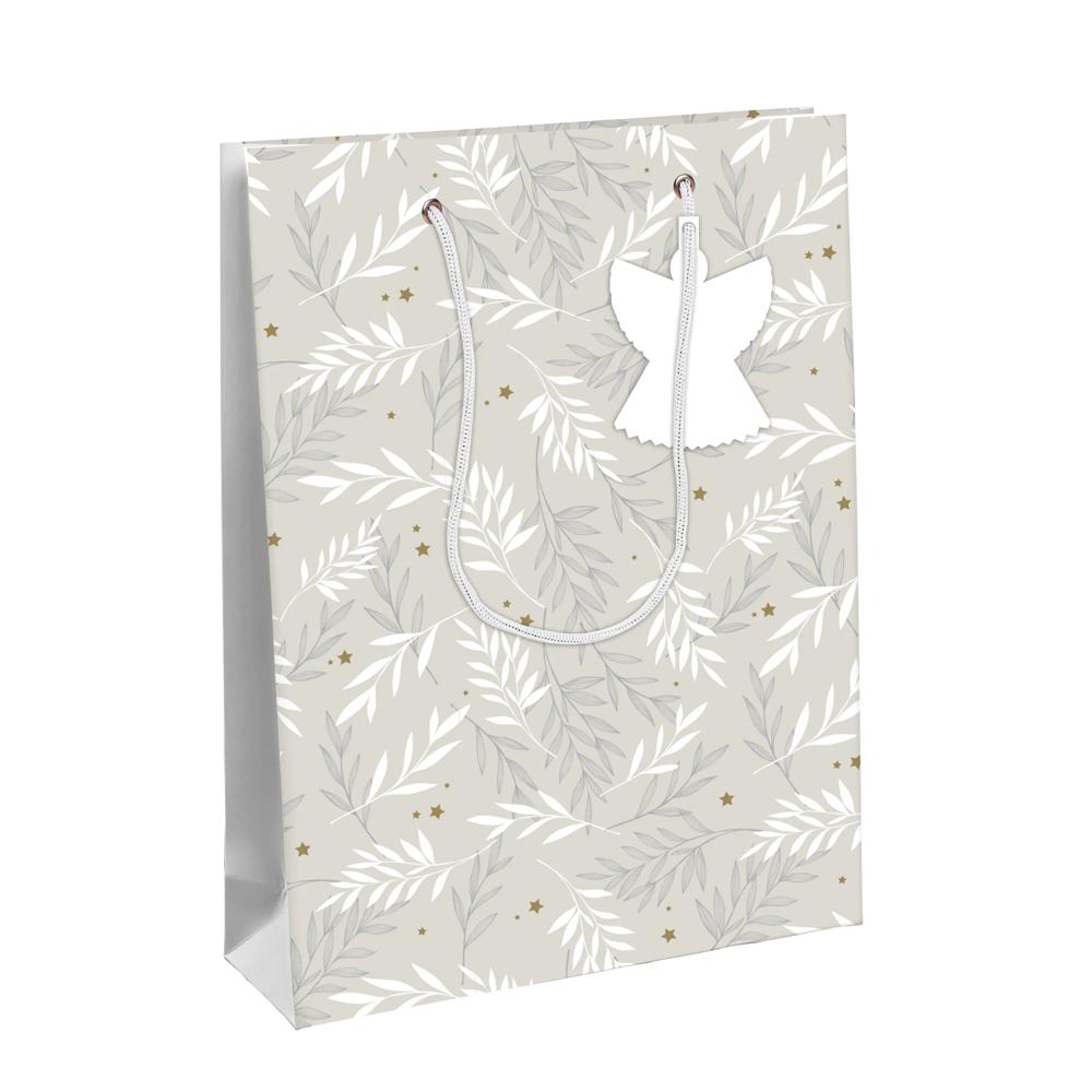 Un sac cadeau en papier imprimé 210g, solide et opaque. Finition spot UV : La lumière UV est utilisée pour traiter un vernis placé sur le papier. Finition soignée assurée ! Dimensions : 26,5x14x33 cm. Anses PP assorties au sac pour le transporter facilement. Solides et raffinées, elles supportent le poids de tous vos cadeaux, même les plus lourds. Un sac contemporain qui met en valeur votre cadeau. Pas besoin de scotch ou de bolduc, glissez votre cadeau simplement dans votre sac pour le valoriser et créer l'effet de surprise. Plus de perte de temps pour emballer artistiquement un cadeau aux bords asymétriques ! Le sac permet une présentation simple, rapide et esthétique. De très bonne qualité, il est solide et peut être réutilisé plusieurs fois. Une étiquette originale assortie au sac est fixée à la poignée. Elle vous permet de noter un message, votre nom ou celui du destinataire.