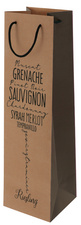 Description détailléePour 1 bouteille, dimensions: (L)105 x (P)100 x (H)360 mm, e en papier kraft de 180 g/m2, fond et bord renforcés, avec cordelette de transport noire
