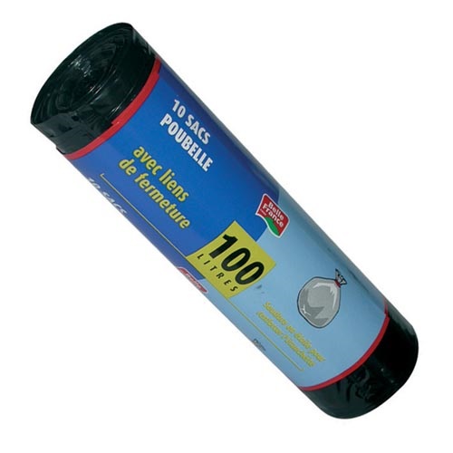 Description détailléeRouleau de 10 sacs poubelle BELLE FRANCE avec liens de fermeture. Capacité : 100 L. Coloris : noir.