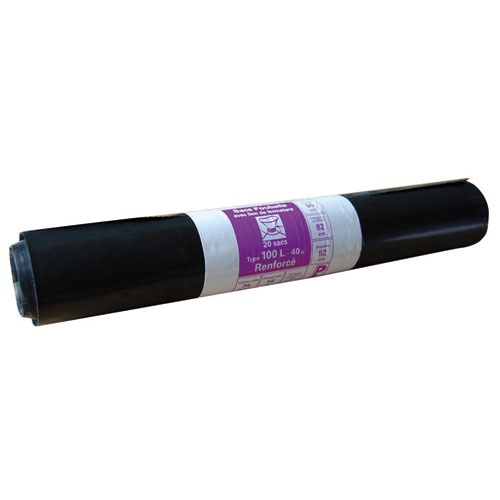 Existe en plusieurs tailles Lot de 20 sacs poubelle PUBLI EMBAL renforcé. Système de fermeture avec liens. Capacité : 100 L. Dimensions : 82x90 cm. Epaisseur : 40 microns. Coloris : noir.