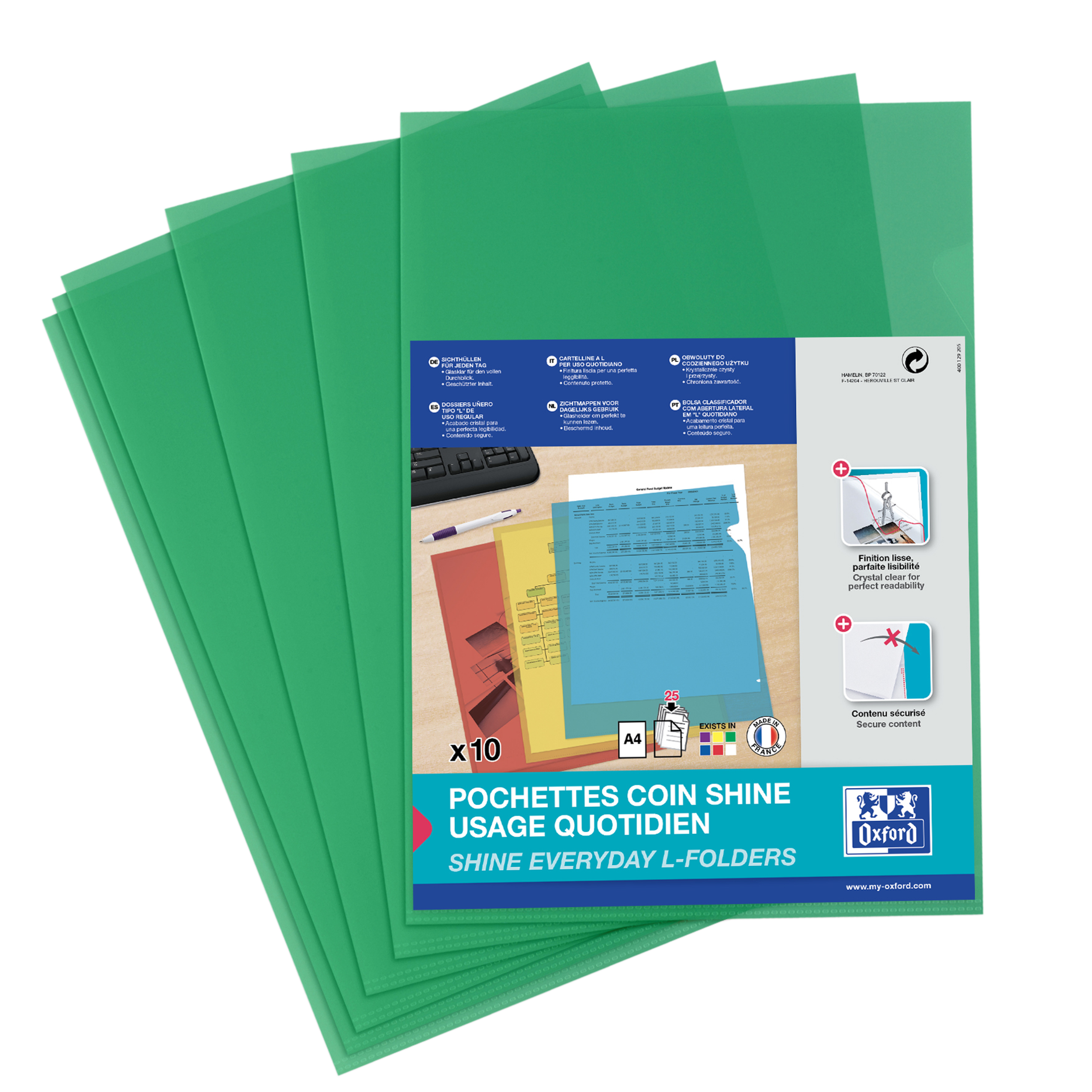TRANSPARENCE : Le Polypro translucide de la pochette-coin permet une identification immédiate du contenu et une meilleure lisibilité des documents. CAPACITE : La pochette-coin transparente Shine dispose d'une bonne capacité de rangement puisqu'elle peut contenir 25 feuilles de format A4, en moyenne. OUVERTURE : Pour faciliter l'ouverture, une découpe "coup de pouce" est située sur la pochette translucide. Elle permet d'accéder facilement au contenu et offre une ouverture rapide de la pochette-coin. Ce produit est disponible sous les versions de couleurs suivantes : - Assorti : Bleu ; Incolore ; Jaune ; Rouge ; Vert ; Violet - Bleu - Incolore - Jaune - Rouge - Vert - Violet