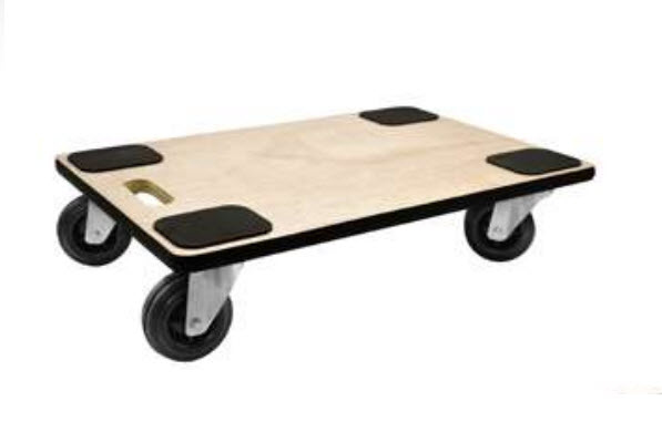 Description détailléeCapacité de charge 300 kg, 4 roues pivotantes, diamètre des roues: 100 mm, dimensions: (L)600 x (P)400 mm, épaisseur du plateau: 18 mm, avec poignée de transport