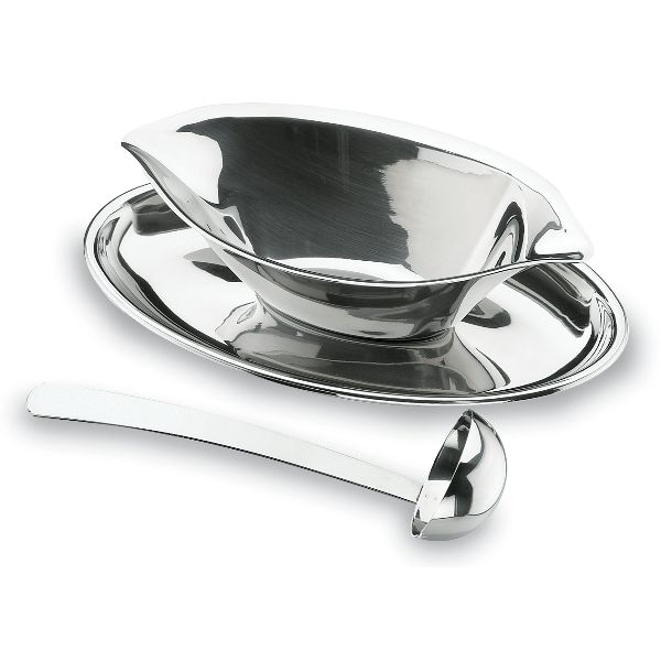 Saucière avec louche et plateau - Luxe - Pour présenter et servir vos sauces chaudes ou froides avec élégance ! - Composée d'une saucière, d'un plateau et d'une louche de service - En inox - Capacité 200 ml - Nettoyage facile : passe au lave-vaisselle - Dimensions 20.8 x 12.6 x 6.2 cm.