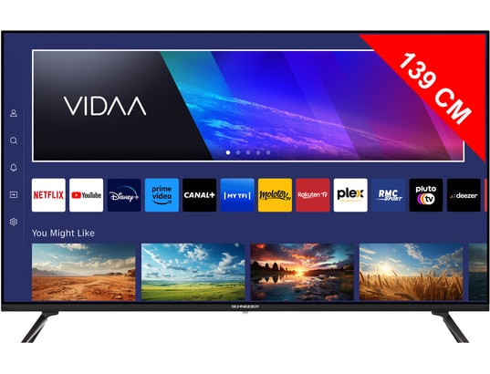 Le téléviseur série A1, GMS55A1, de Schneider dispose d'un écran QLED de 139 cm (55 pouces). Sa résolution 4K UHD génère des couleurs vives et des images proches de la réalité afin que vous puissiez profiter au maximum de votre série. Le système sonore Dolby audio est parfait pour une immersion complète dans vos films, séries ou musiques préférées. Cette smart tv intègre le système d'exploitation VIDAA pour que vous puissiez accéder à vos contenus favoris grâce à une vaste sélection d'applications disponibles, telles que Netflix, Disney+ et Prime Video.