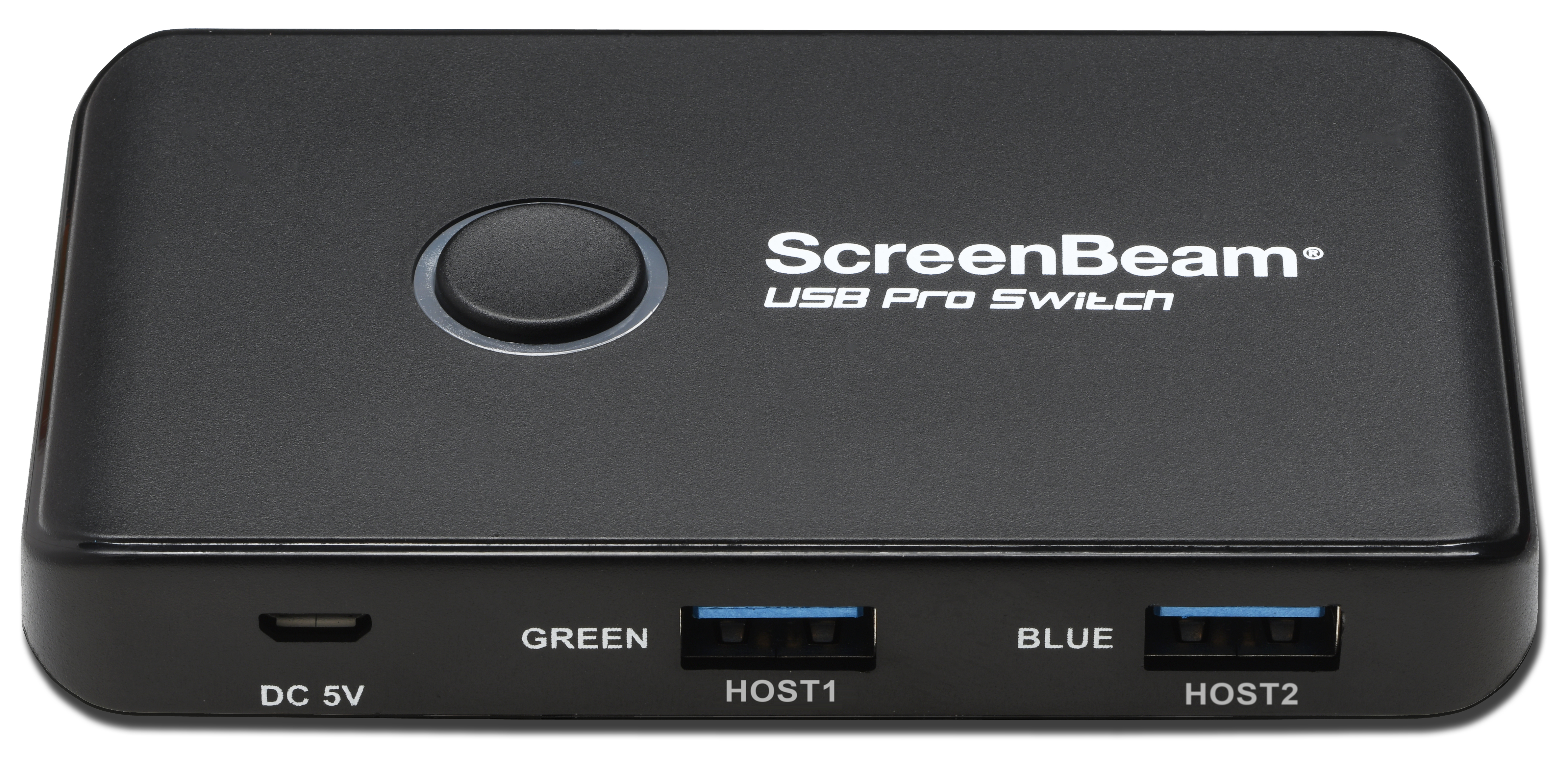 Pour les utilisateurs qui souhaitent bénéficier de la flexibilité ultime d’un MTR avec partage de contenu, BYOM et prise en charge de l’affichage tactile, deux commutateurs ScreenBeam USB Pro sont nécessaires :