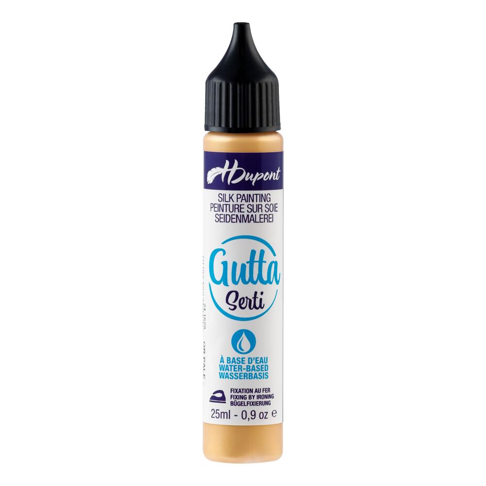 USAGE : Sans utilisation de serti, la peinture s'étale et fuse sur la soie. Afin de réaliser des créations plus précises, il est possible de délimiter des zones de coloration grâce au serti (aussi appelé gutta). Contenance : 25ml. MODE D'EMPLOI : Appliquez le serti sur la soie, laissez sécher, placez un linge propre entre la réalisation et votre fer puis repasser pendant quelques minutes. Vous pourrez ensuite colorer à l'intérieur des zones délimitées. FORMAT TUBE : Après fixage de la couleur, les sertis à l'eau sont indélébiles et feront partie intégrante de votre réalisation. Le p ackaging en tube facilite l'application. 19 couleurs sont disponibles COMPATIBLE AVEC : Les sertis à l'eau sont compatibles avec les peintures H Dupont et Arasilk. Le serti est un auxiliaire indispensable. Découvrez la gamme complète d'auxiliaires et perfectionnez votre technique de peinture sur soie. PREMIUM : H Dupont est une marque haut de gamme de peintures et auxiliaires pour soie. Utilisée par de nombreux professionnels de la soie. Découvrez l'entiereté de la gamme et initiez vous à la pratique créative et apaisante de la peinture sur soie.