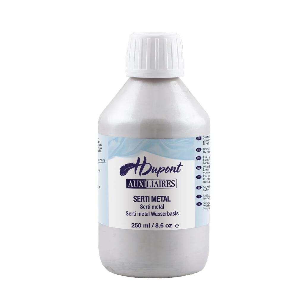 USAGE : Sans utilisation de serti, la peinture s'étale et fuse sur la soie. Afin de réaliser des créations plus précises, il est possible de délimiter des zones de coloration grâce au serti (aussi appelé gutta). Existe en 100ml et 250ml. MODE D'EMPLOI : Appliquez le serti sur la soie à l'aide d'une burette (flacon d'application), laissez sécher, repassez quelques minutes en plaçant un linge propre entre le fer et la soie. Vous pourrez ensuite colorer les zones délimitées. FORMAT POT : Idéal pour les réalisations de grande taille. Existe en plusieurs conditionnements : 100ml et 250ml. 5 couleurs sont disponibles : noir, or pâle, or riche, cuivre et argent. COMPATIBLE AVEC : Les sertis à l'eau sont compatibles avec les peintures H Dupont et Arasilk. Le serti est un auxiliaire indispensable. Découvrez la gamme complète d'auxiliaires et perfectionnez votre technique de peinture sur soie. PREMIUM : H Dupont est une marque haut de gamme de peintures et auxiliaires pour soie. Utilisée par de nombreux professionnels de la soie. Découvrez l'entiereté de la gamme et initiez vous à la pratique créative et apaisante de la peinture sur soie.