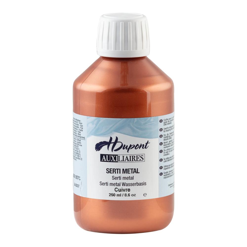 USAGE : Sans utilisation de serti, la peinture s'étale et fuse sur la soie. Afin de réaliser des créations plus précises, il est possible de délimiter des zones de coloration grâce au serti (aussi appelé gutta). Existe en 100ml et 250ml. MODE D'EMPLOI : Appliquez le serti sur la soie à l'aide d'une burette (flacon d'application), laissez sécher, repassez quelques minutes en plaçant un linge propre entre le fer et la soie. Vous pourrez ensuite colorer les zones délimitées. FORMAT POT : Idéal pour les réalisations de grande taille. Existe en plusieurs conditionnements : 100ml et 250ml. 5 couleurs sont disponibles : noir, or pâle, or riche, cuivre et argent. COMPATIBLE AVEC : Les sertis à l'eau sont compatibles avec les peintures H Dupont et Arasilk. Le serti est un auxiliaire indispensable. Découvrez la gamme complète d'auxiliaires et perfectionnez votre technique de peinture sur soie. PREMIUM : H Dupont est une marque haut de gamme de peintures et auxiliaires pour soie. Utilisée par de nombreux professionnels de la soie. Découvrez l'entiereté de la gamme et initiez vous à la pratique créative et apaisante de la peinture sur soie.