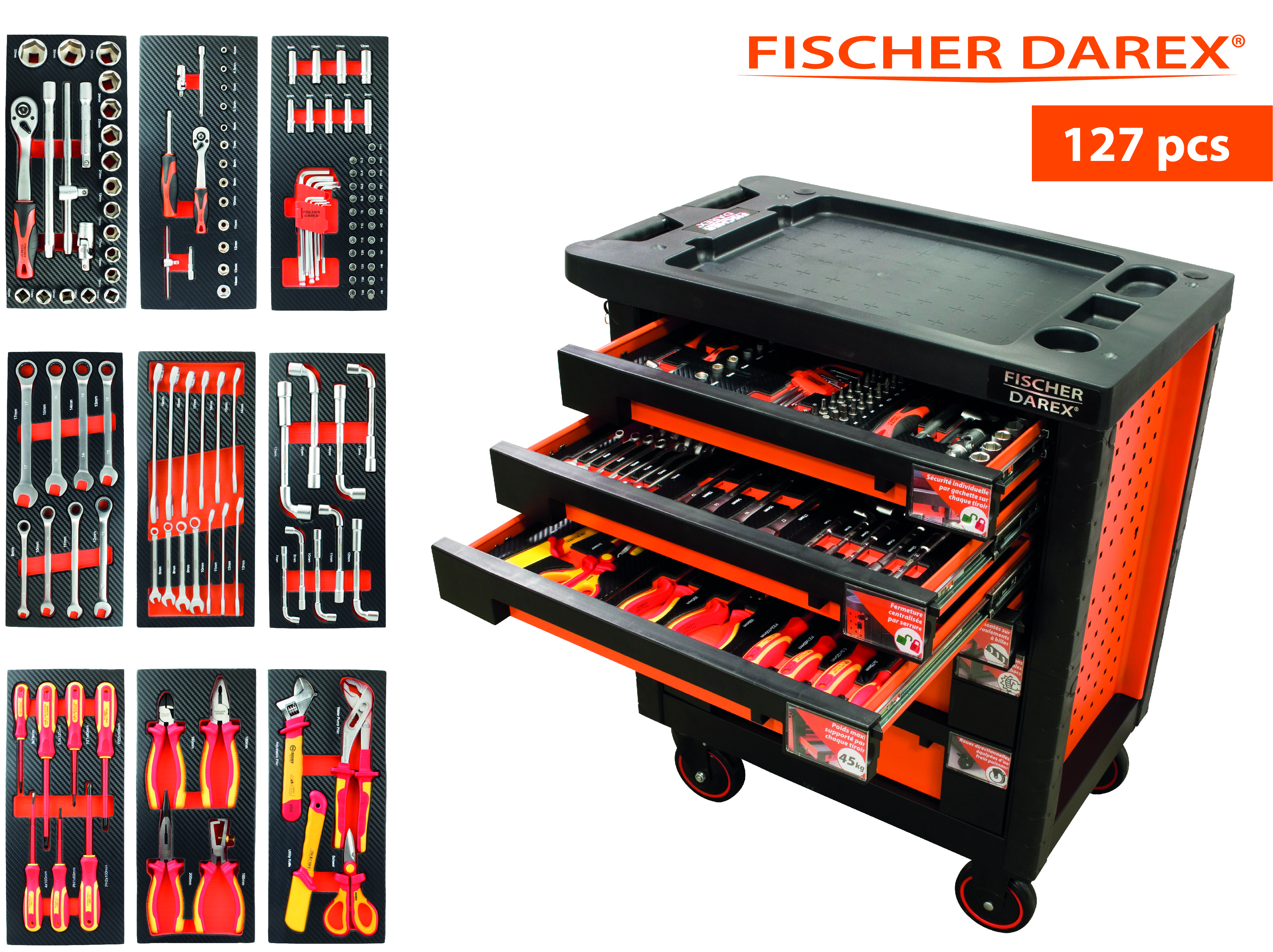 Ses dimensions totales, roues comprises, sont de 460 x 780 x 900 mm, avec un poids à vide de 50 kg. Les roues en plastique ont un diamètre de 125 mm, et les hauteurs de tiroirs sont de 70 mm et 140 mm.