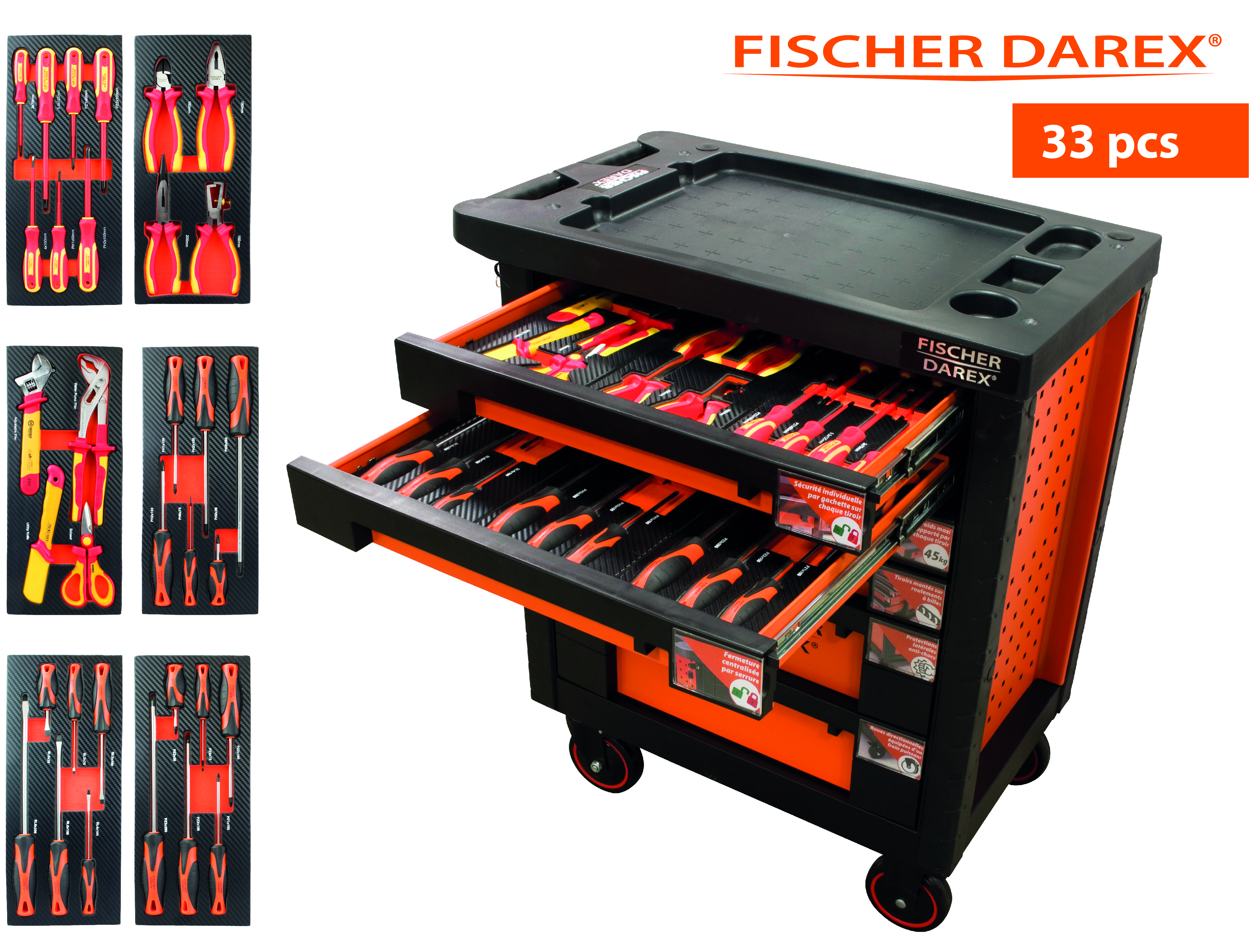 Ses dimensions totales, roues comprises, sont de 460 x 780 x 900 mm, avec un poids à vide de 50 kg. Les roues en plastique ont un diamètre de 125 mm, et les hauteurs de tiroirs sont de 70 mm et 140 mm.