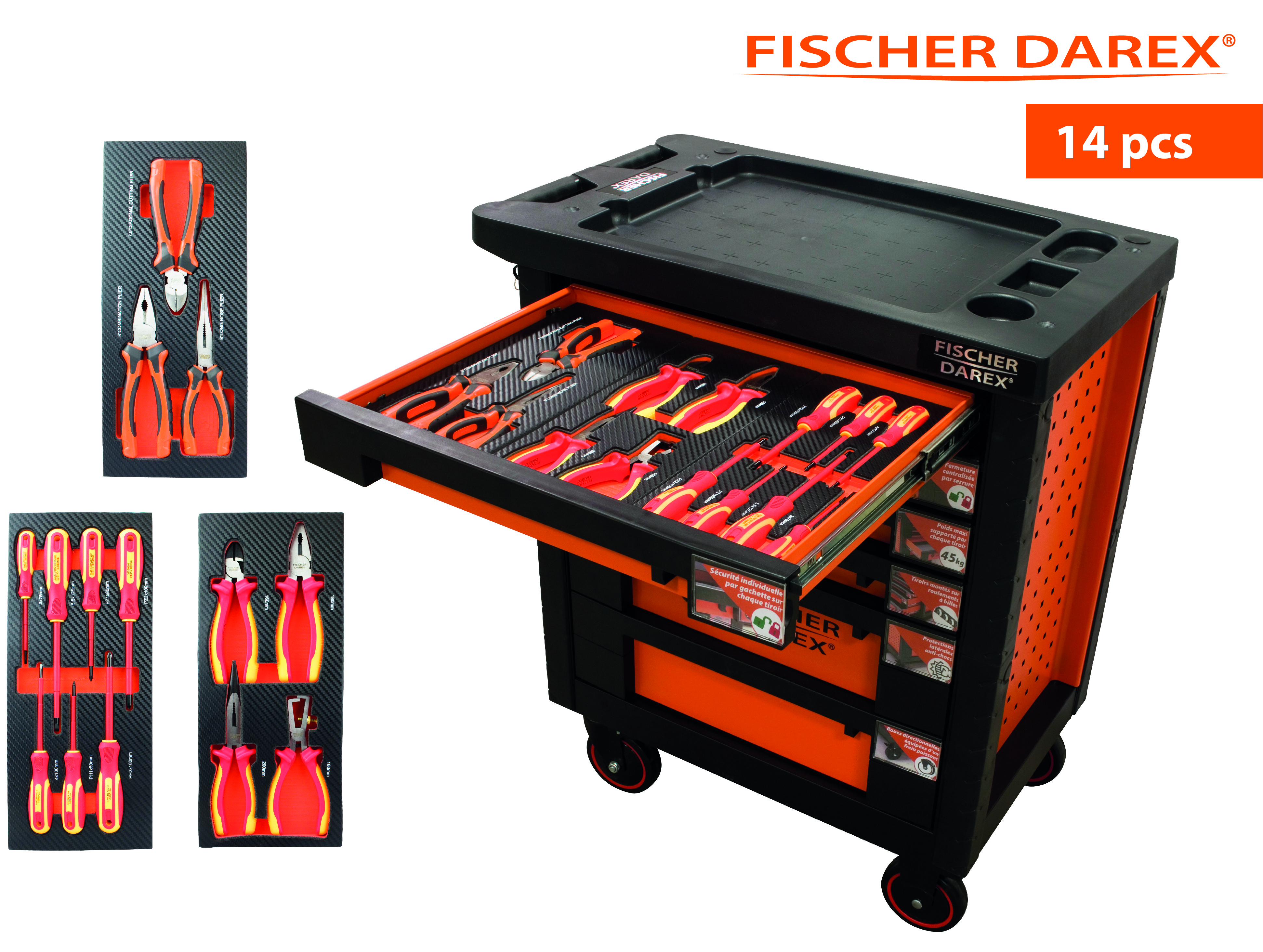 Ses dimensions totales, roues comprises, sont de 460 x 780 x 900 mm, avec un poids à vide de 50 kg. Les roues en plastique ont un diamètre de 125 mm, et les hauteurs de tiroirs sont de 70 mm et 140 mm.