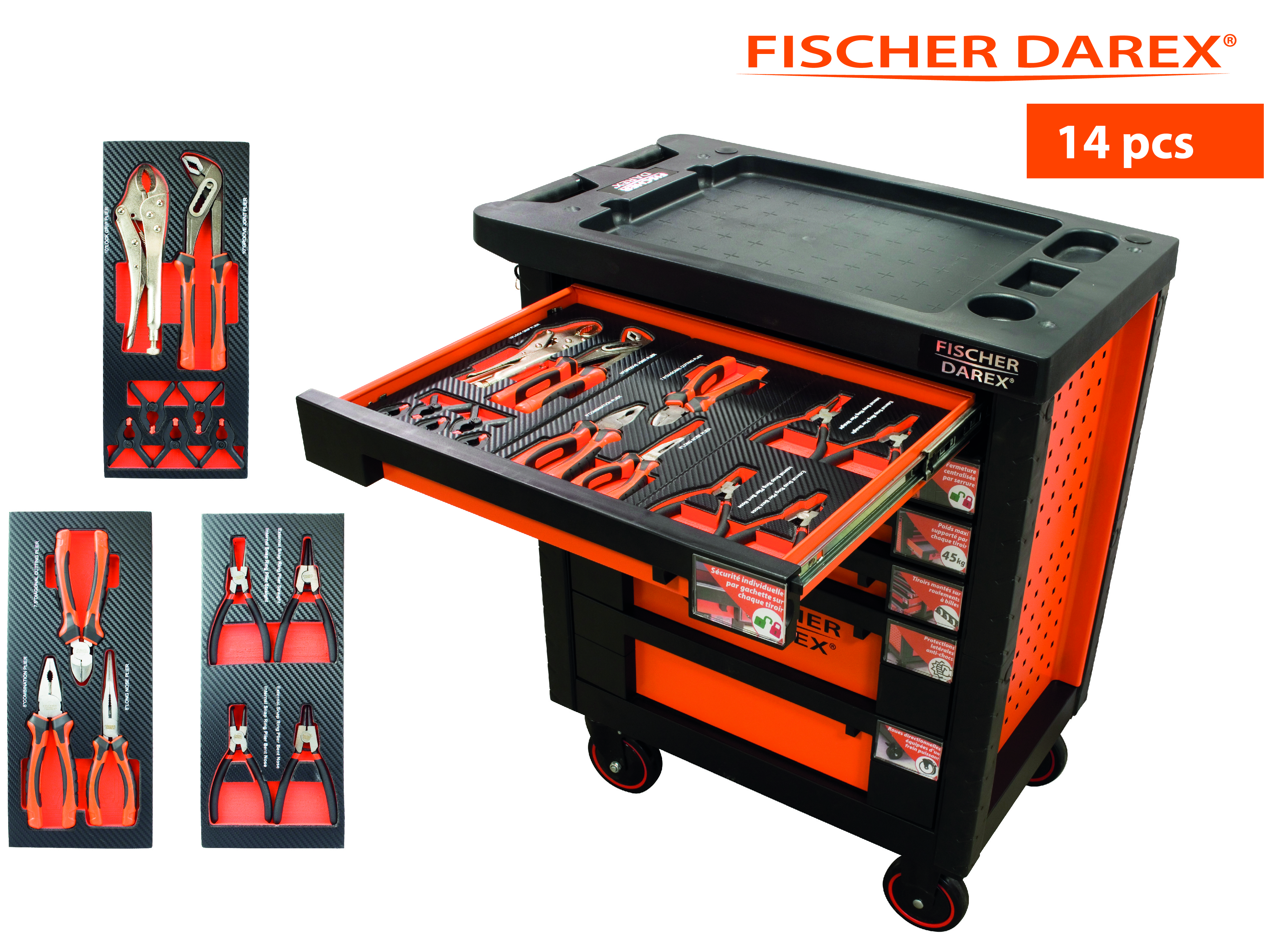 Ses dimensions totales, roues comprises, sont de 460 x 780 x 900 mm, avec un poids à vide de 50 kg. Les roues en plastique ont un diamètre de 125 mm, et les hauteurs de tiroirs sont de 70 mm et 140 mm.