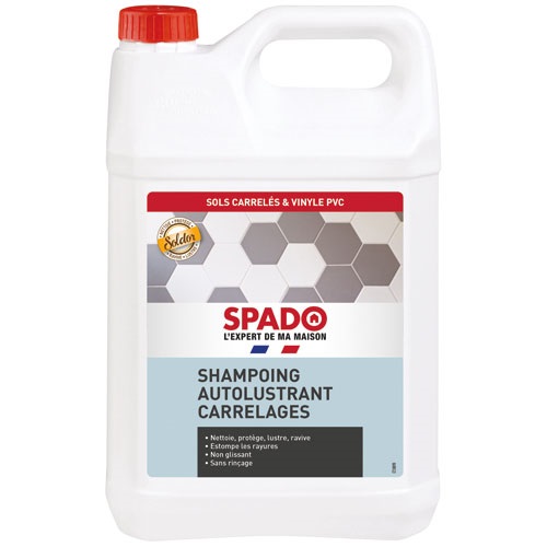 Le shampoing auto lustrant Soldor de 1 L de la marque SPADO pour l'entretien des carrelages et sols plastiques, nettoie, protège et ravive vos sols. S'emploie pur comme une émulsion pour renforcer le brillant. S'emploie dilué pour raviver et entretenir facilement les sols protégés. Brille sans glisser et ne jaunit pas à la lumière. Contient : aucune substance dangereuse.